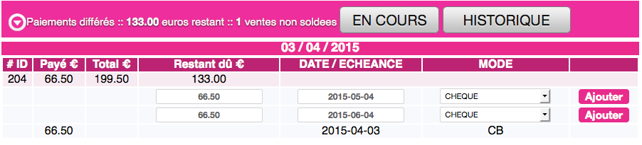 Si un paiement différé est en attente, le logiciel vous affichera automatiquement cet onglet afin de ne pas oublier.